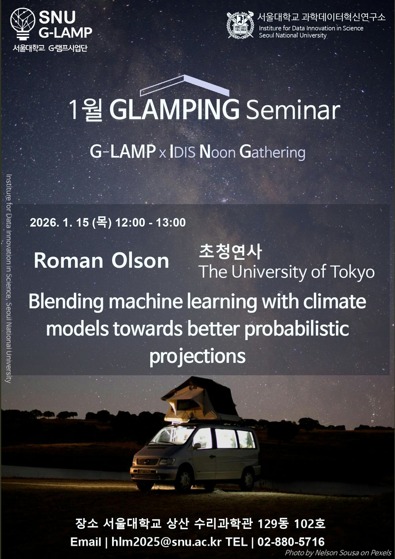 일시: 2026-01-15 장소: 129동 102호 발표자: 초청연사 Roman Olson 발표제목: Blending machine learning with climate models towards better probabilistic projections